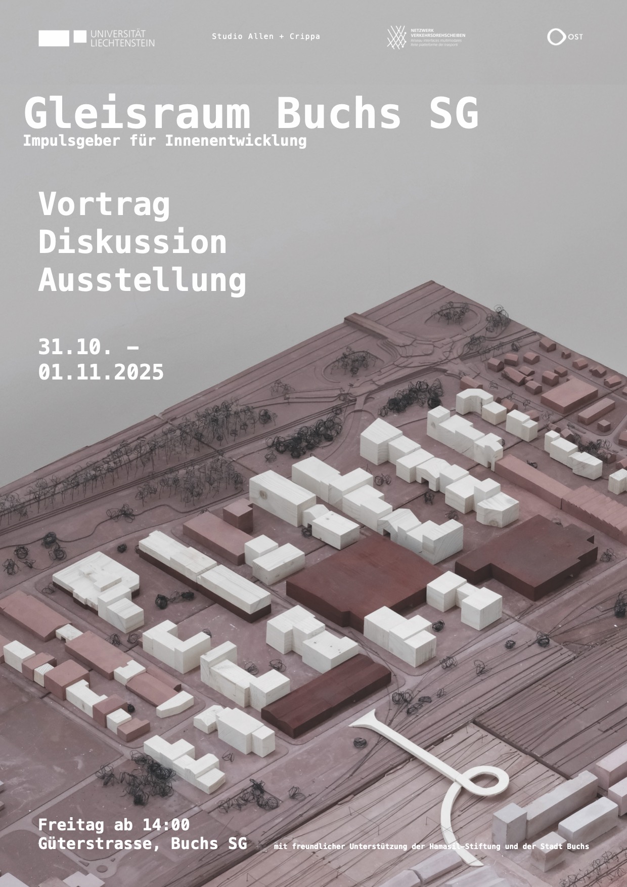 Im Rahmen unserer Lehre organisieren wir die Ausstellung „Gleisraum Buchs SG“ zur Zukunft von Buchs und zeigen studentische Arbeiten, die aktuelle Fragen von Stadt, Raum und Architektur erforschen.